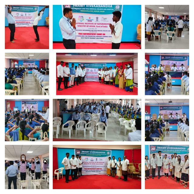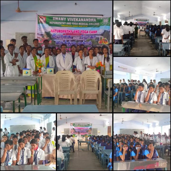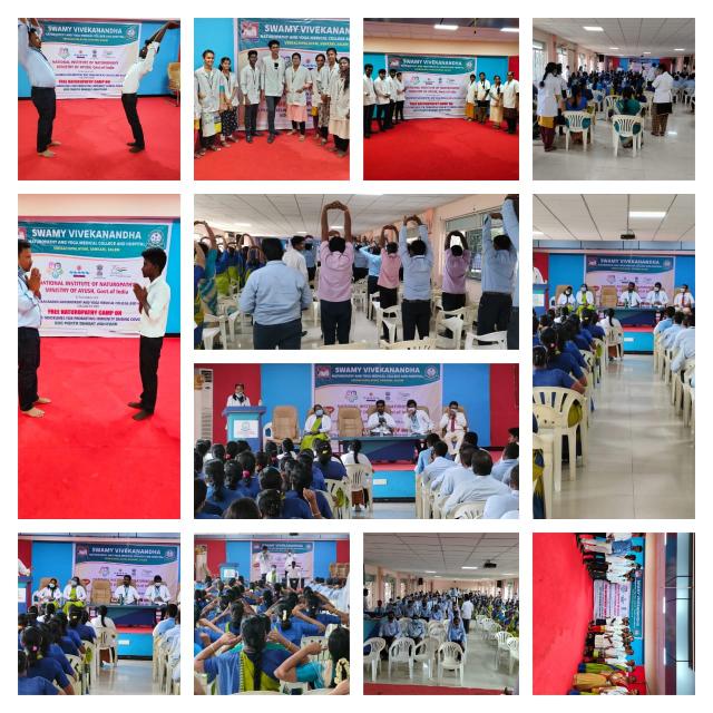 Swamy Vivekanandha Naturopathy and Yoga Medical College Conducted Free Naturopathy and Yoga Medical Camp at Sri Vidya Mandir Sec School, Shevapet, Salem on 4/8/22. Around 350 Students and Faculties actively participated in the camp.