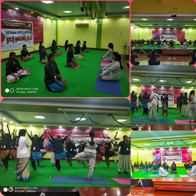 23rd May 2022 - Practical Yoga session conducted by SVNYMC for NSS students of Vivekanandha Arts and Science College for Women, Sankari