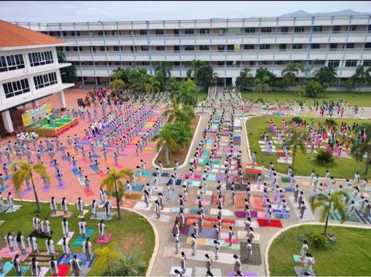 21/6/22 - Aerial view of International Yoga Day 2022 at Swamy Vivekanandha Naturopathy and Yoga Medical College Salem