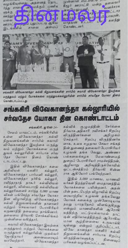 International yoga day celebration in Swamy Vivekanandha Naturopathy and Yoga Medical College Salem