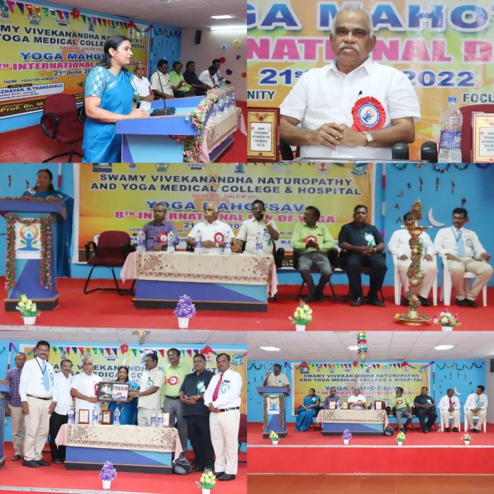 Yoga Day Protocol Practice, Cultural Programme and Yoga Competition conducted in Swamy Vivekanandha Naturopathy and Yoga Medical College Salem on behalf of the celebration of International Yoga Day on 21/6/2022