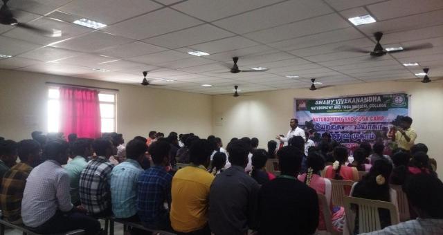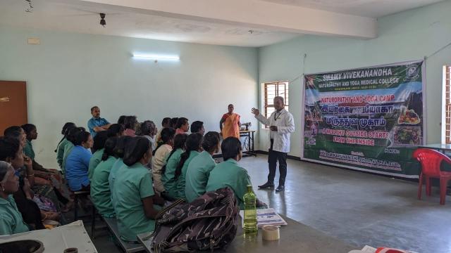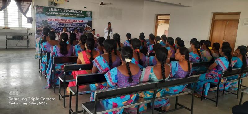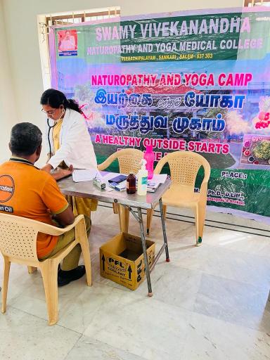 Swamy Vivekanandha Naturopathy and Yoga Medical College and Hospital conducted Naturopathy Free camp on 13.5.2023 at Sri Shanmuga College of Nursing for Women. Around 60 beneficiaries were consulted and treated