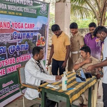 Swamy Vivekanandha Naturopathy and Yoga Medical College and Hospital conducted Free Naturopathy and Yoga Medical Camp at Tiruchangodu fire service station for around 30 beneficiaries
