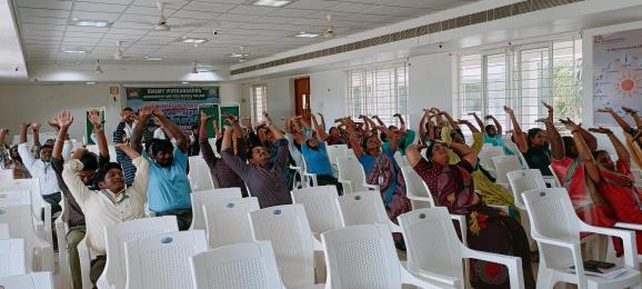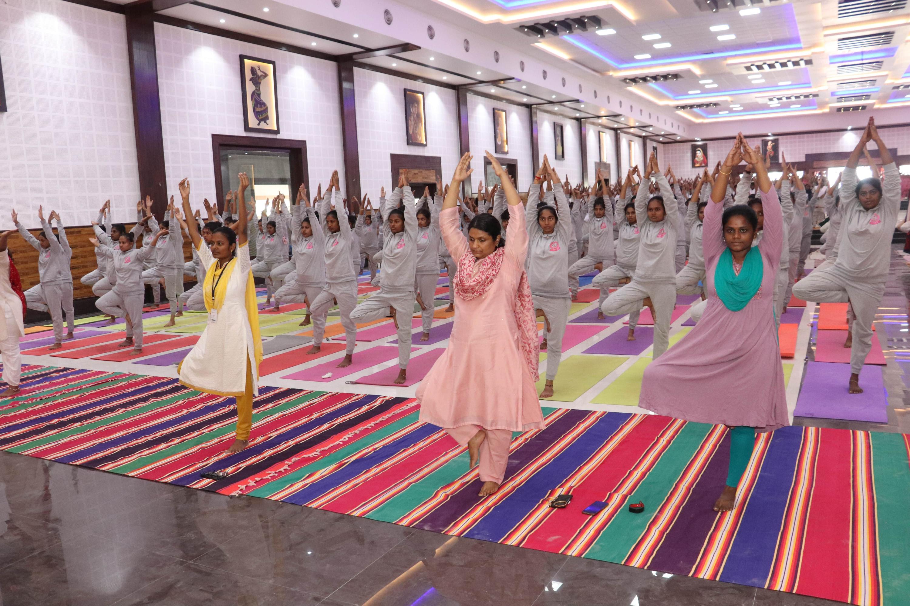 A one and a half hour practise of loosening exercises,Surya namaskaras ,Asanas, Pranayamas,Bandhas, Mudhras and Relaxation techniques were practiced according to the International Yoga Day Protocol 2023