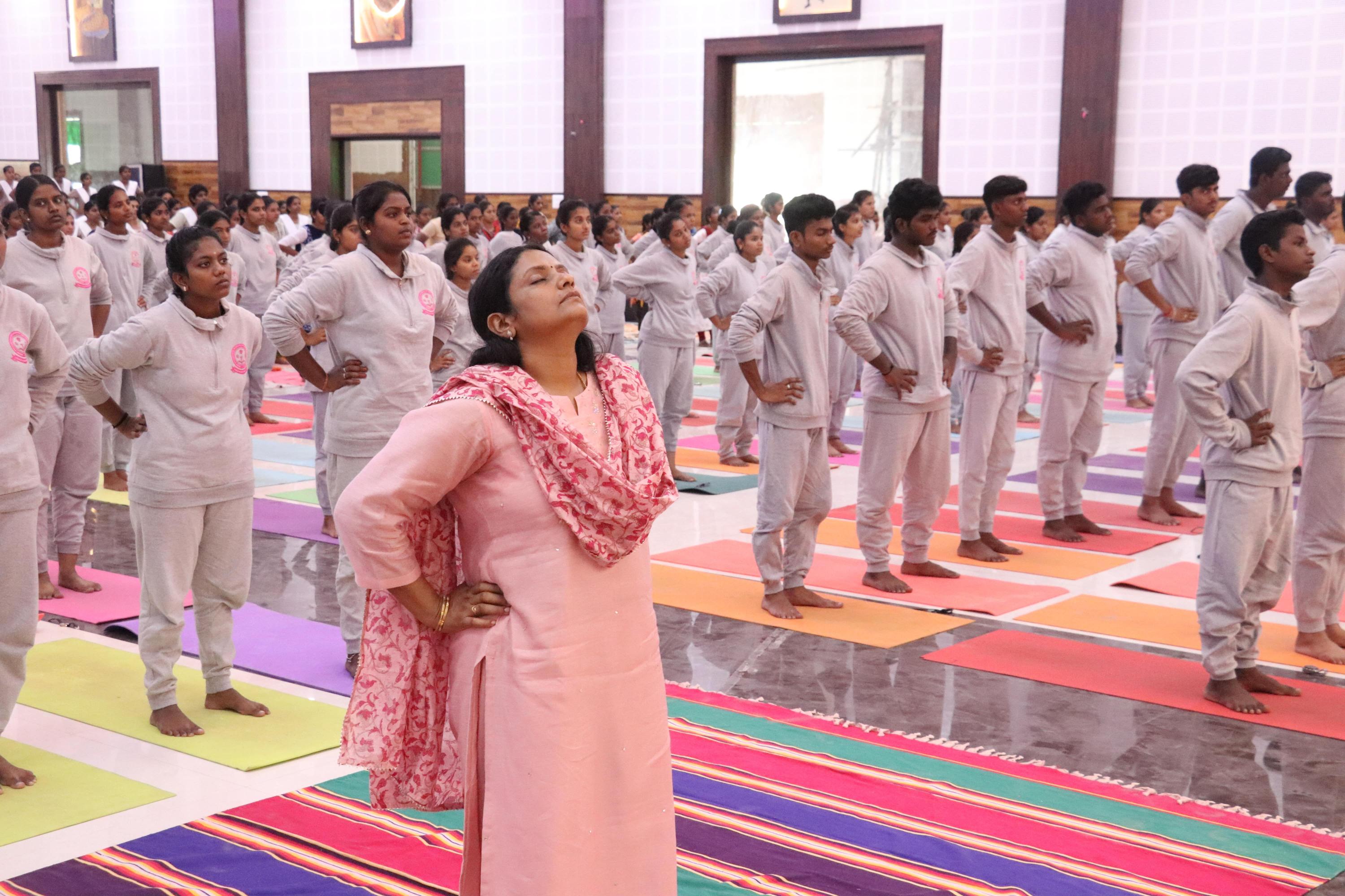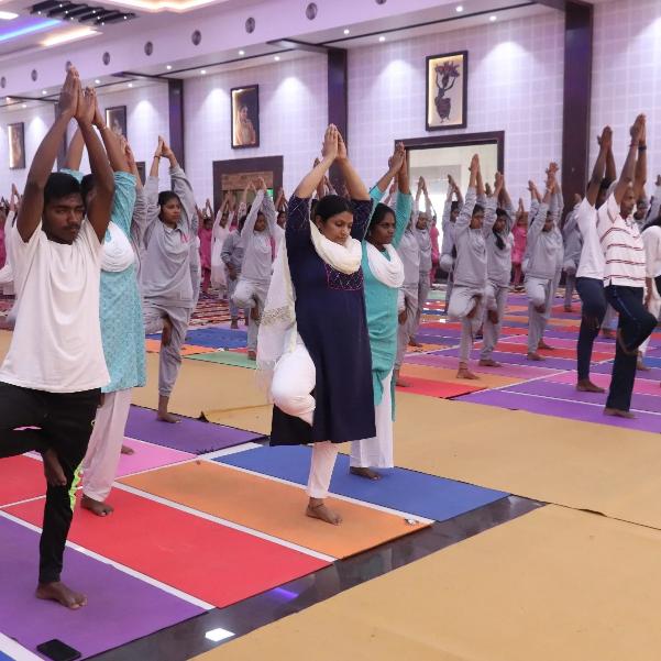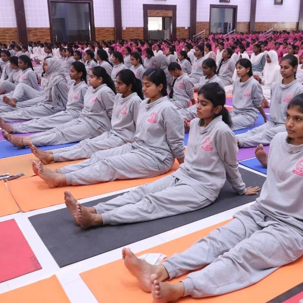 Swamy Vivekanandha Naturopathy & Yoga Medical College, Sankagiri, Salem celebrated International Yoga day 2023 by conducting Mass Yoga Protocol practice session for the students and Faculties of Vivekanandha Institute of Health & Science & Krishna Institute of Health & Science, Elaiyampalayam, Tiruchengode.