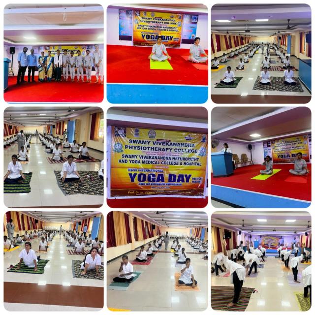 Swamy Vivekanandha Naturopathy & Yoga Medical College, Sankagiri, Salem celebrated International Yoga day 2023 by conducting Mass Yoga Protocol practice session for the students and Faculties of Swamy Vivekanandha Physiotherapy College, Elayampalayam, Tiruchengode.