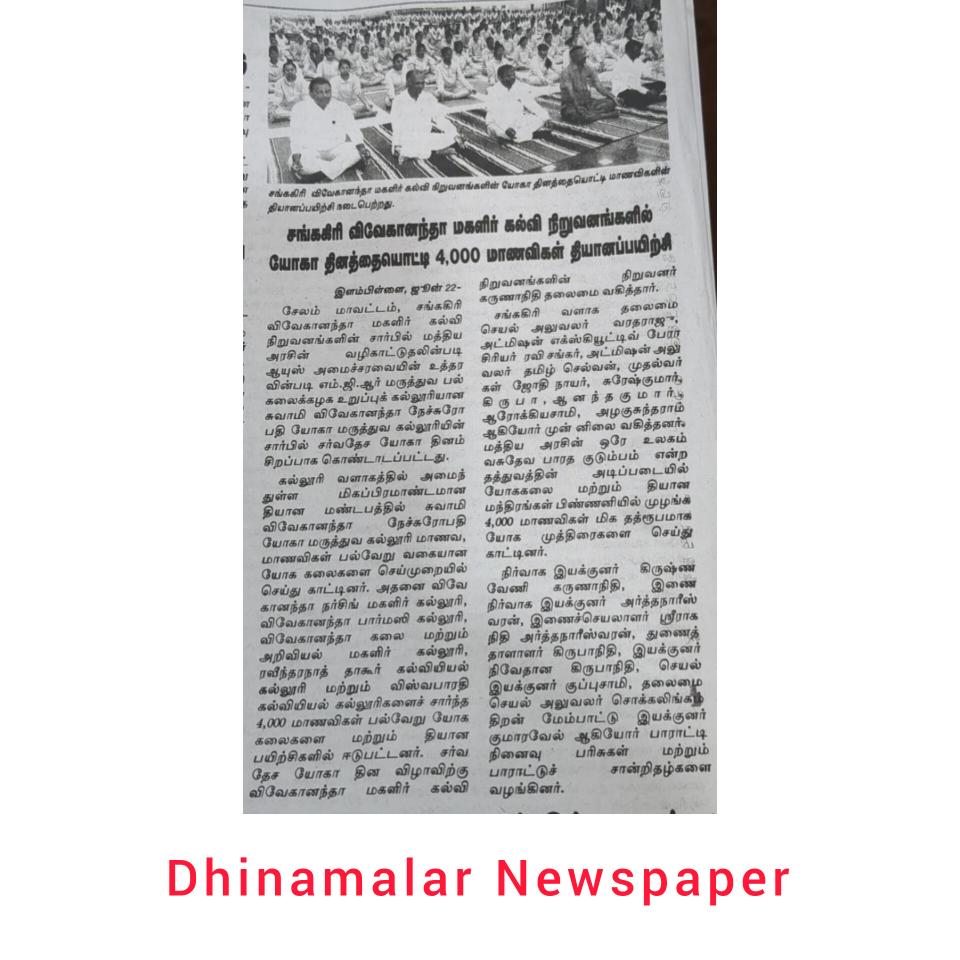 Swamy Vivekanandha Naturopathy and Yoga Medical College, Salem has set a NEW WORLD RECORD of Maximum number of participants attempting 100 times SURYA NAMASKAR Within 30 minutes on 15th June 2023 .