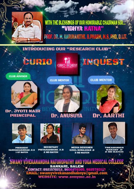 Swamy Vivekanandha naturopathy and yoga medical college students have introduced a research club as CURIO INQUEST
