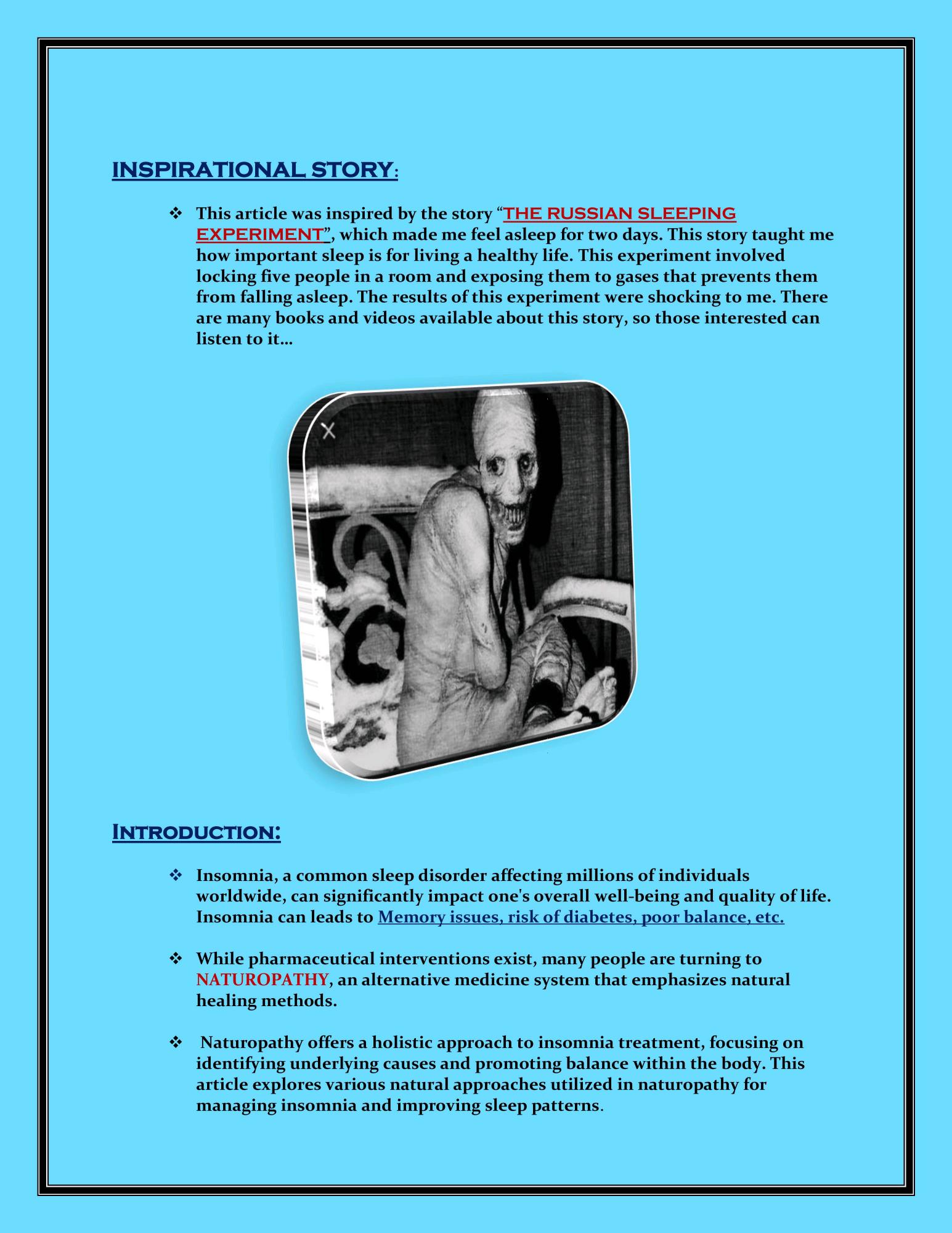 Article about Natural Approaches for treating Insomnia by our Student Ezhil Kumaaran from I -BNYS Part -I, Swamy Vivekanandha Naturopathy and Yoga Medical College, Sankagiri, Salem