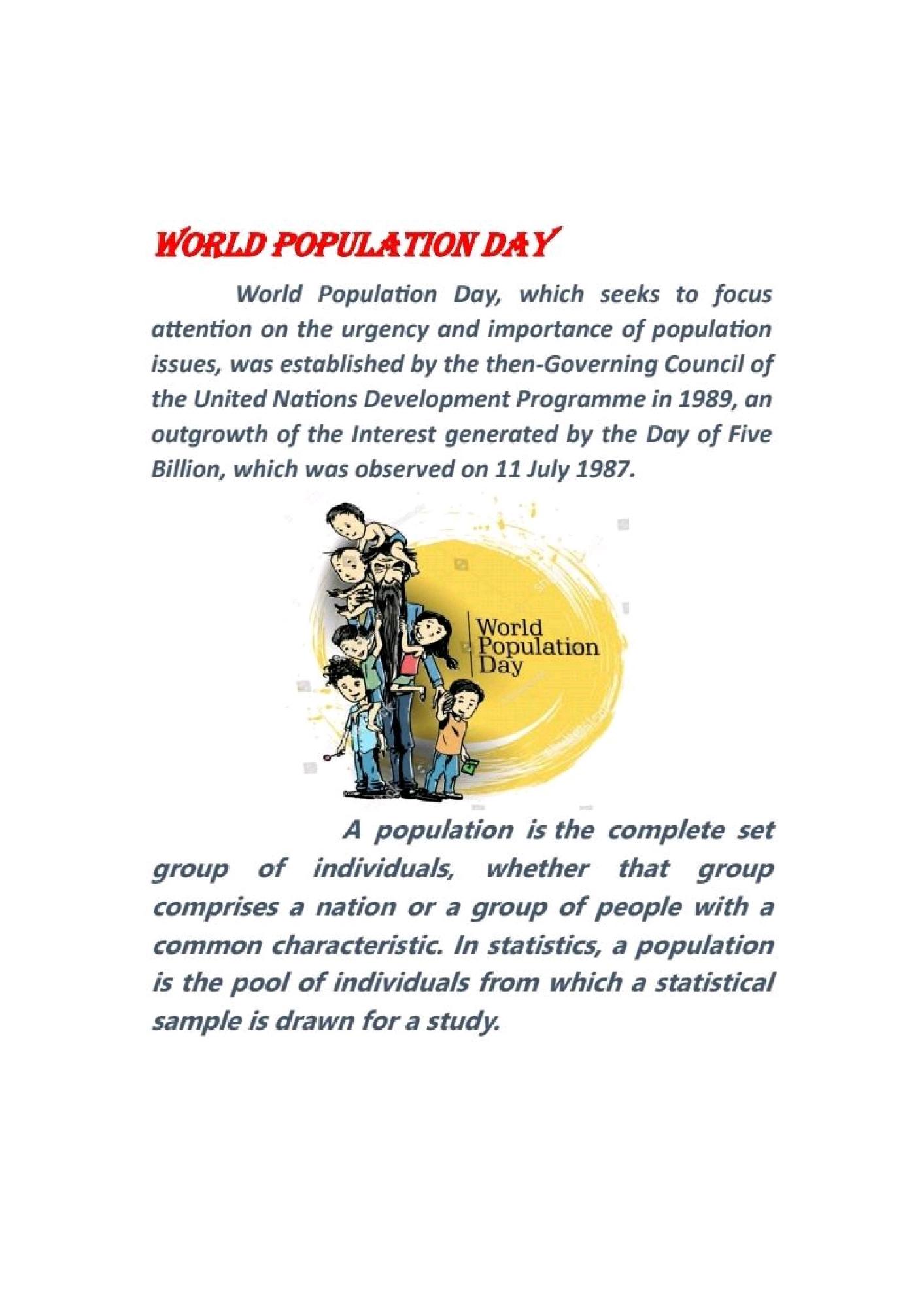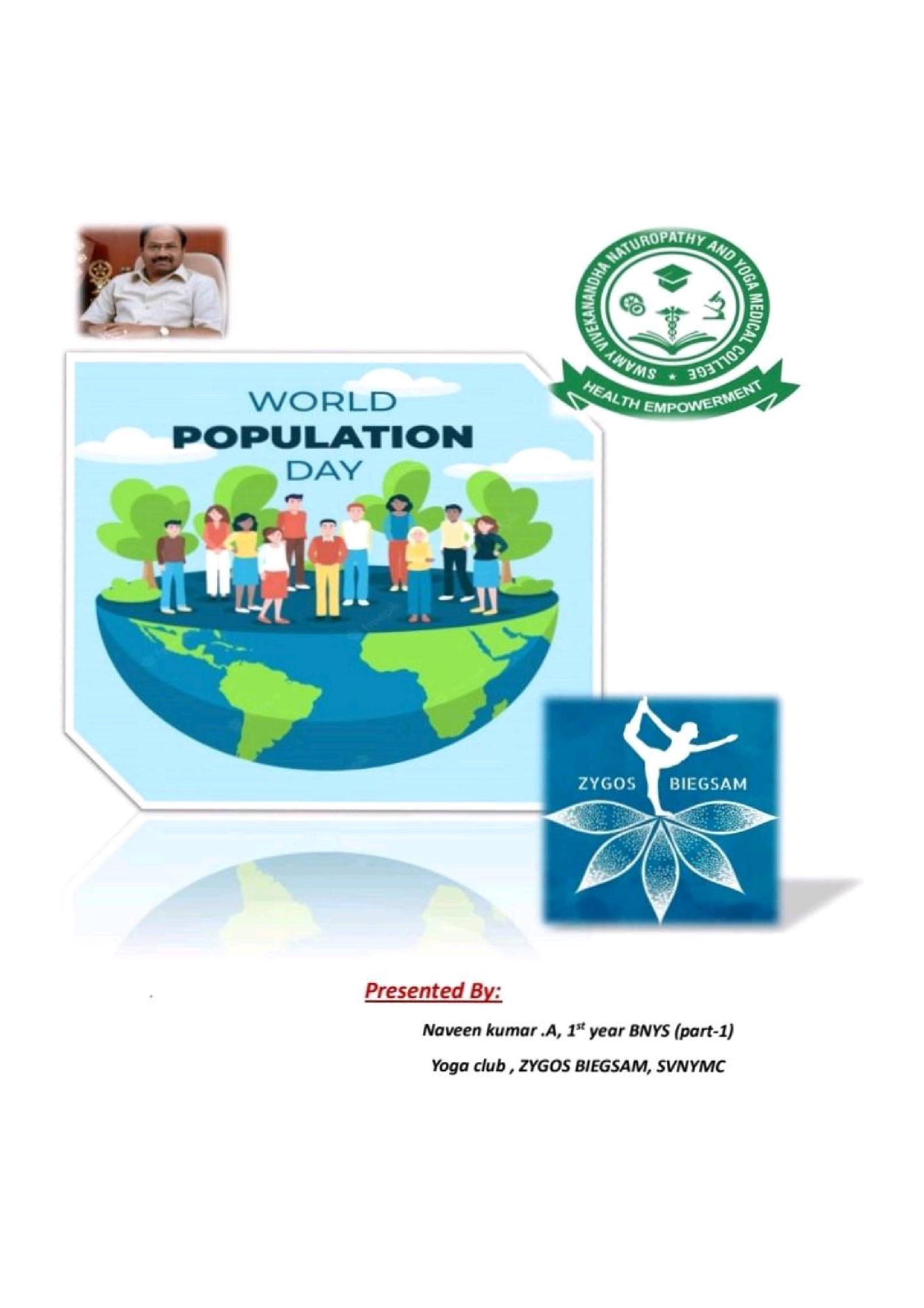 World Population Day - Article by Naveen Kumar ,BNYS First Year ,Part I