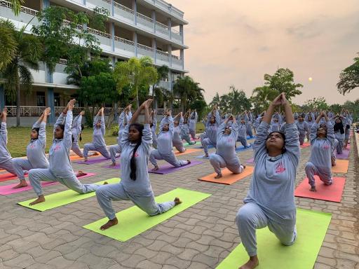 Swamy Vivekanandha Naturopathy & Yoga Medical College, Sankagiri, Salem celebrated International Yoga day 2023 by conducting Mass Yoga Protocol practice session for the students and Faculties of Vivekanandha Pharmacy College for Women, Elayampalayam, Tiruchengode.