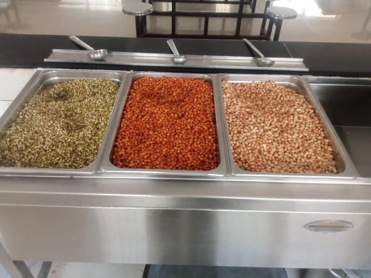 Wednesday's Naturopathy Lunch of SVNYMC students - Boiled diet - Sweet Poha coconut jaggery, Boiled groundnuts ,Potato smash and Mix Vegetable Soup - "Practicing what we preach