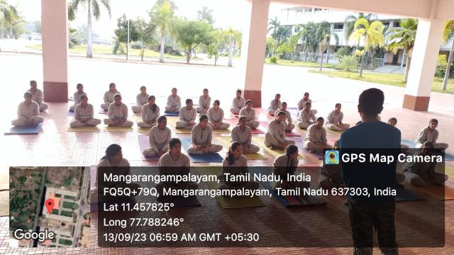 Swamy Vivekanandha Naturopathy & Yoga Medical College, Sankagiri, Salem celebrated International Yoga day 2023 by conducting Mass Yoga Protocol practice session for the students and Faculties of Vivekanandha College of Engineering for Women, Elaiyampalayam, Tiruchengode.