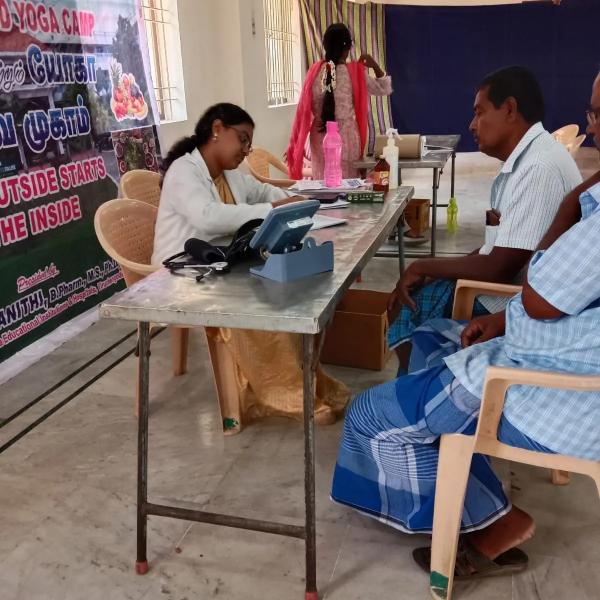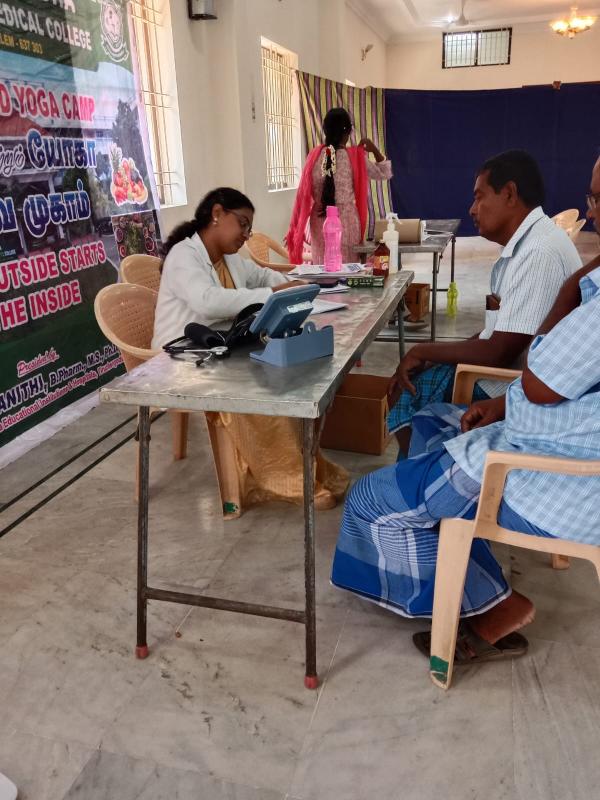 Day 2 Free Naturopathy and Yoga Medical Camp conducted by Swamy Vivekanandha Naturopathy and Yoga Medical College and Hospital Sankari,Salem at Sanga velli vizha kattidam, Sankari on 5.3.23.Around 50 beneficiaries took Free Consultations,Diet Counseling Yoga therapy, Acupuncture and other Naturopathy treatments